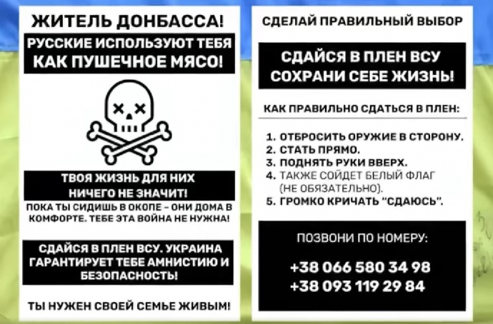 Детали: Маляр обнародовала видео, в котором говорится, что агитационные снаряды содержат листовки, которые призывают врага сдаться в плен и инструктируют, как это сделать.