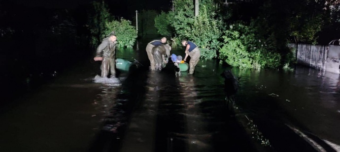 В результате повреждения гидротехнических сооружений города на реке Ингулец поднялась вода. На разных участках – от 1 до 2 метров. Подтопило более 100 домов и подворий. Людей эвакуировали, отмечают спасатели.