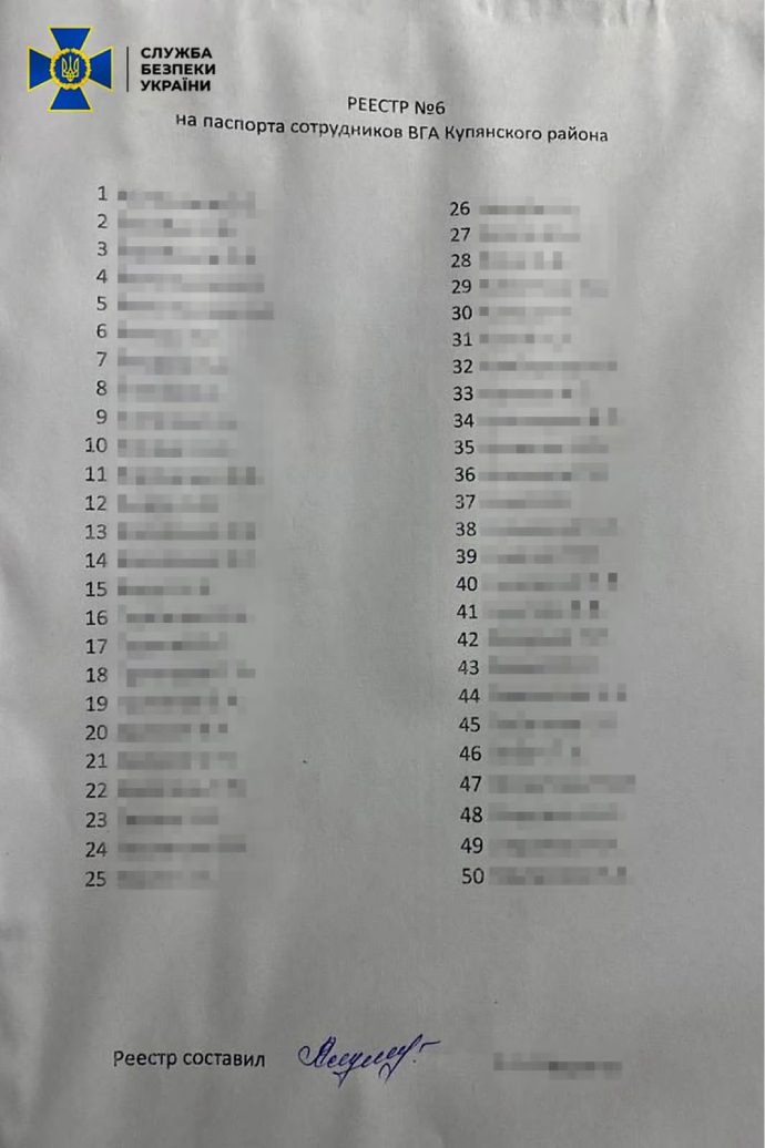 Сообщается, что в ходе оперативных действий на освобожденных территориях сотрудники СБУ получили полные списки с учредительными данными представителей бывшей оккупационной администрации и сотрудничавших с ними лиц.