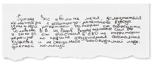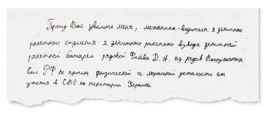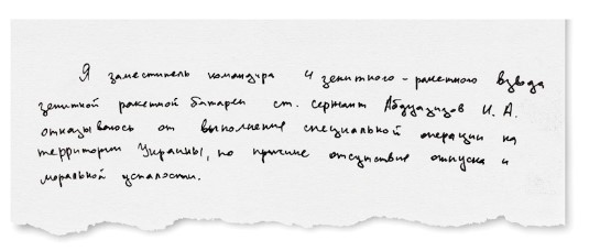 "Я отказываюсь от выполнения специальной операции на территории Украины по причине отсутствия отпуска и моральной усталости", — говорится в одном из писем.