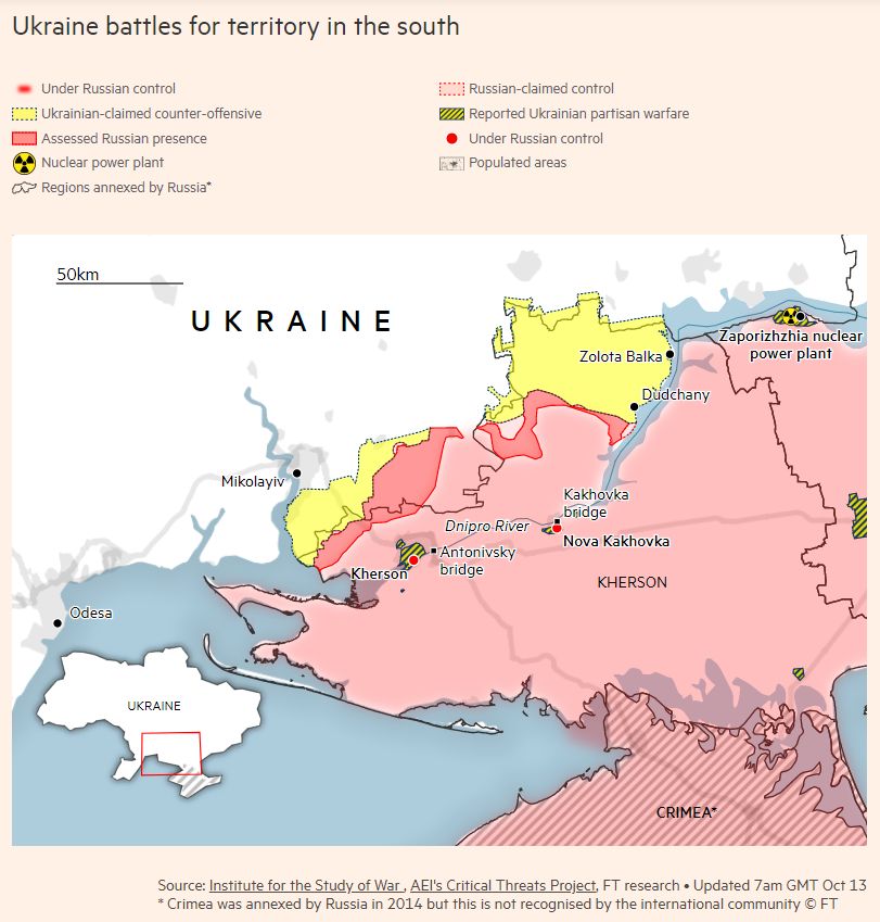 - 13 октября коллаборанты призвали Кремль помочь им с эвакуацией населения из Херсонской области.