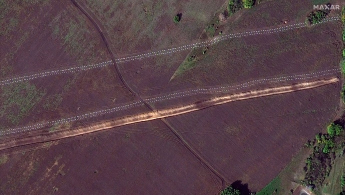 Спутниковые снимки компании Maxar Technologies свидетельствуют, что возле города Горское Луганской области российские наемники возвели 2-километровую так называемую "линию Вагнера".