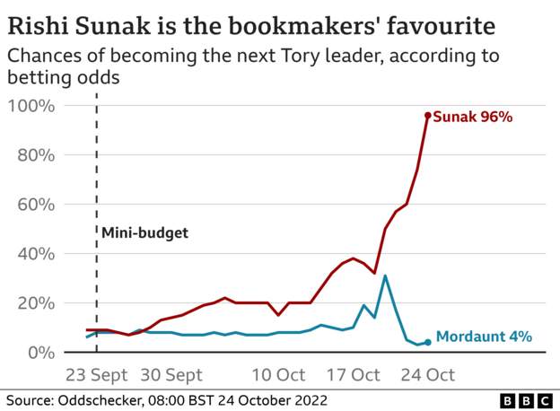 Букмекеры оценивают шансы Сунака на победу уже в 96%.