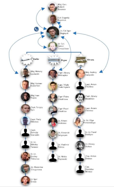 На основе повторяющихся звонков расследователи реконструировали команду из 33 военных инженеров, подчиняющихся Багнюку. Им также удалось связать отдельные удары крылатых ракет с конкретными подразделениями ГВЦ.