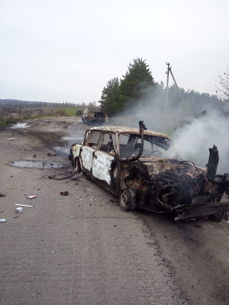 Дословно: "6 ноября противотанковый снаряд попал в автомобиль 45-летнего жителя Купянского района. Мужчина ехал домой.