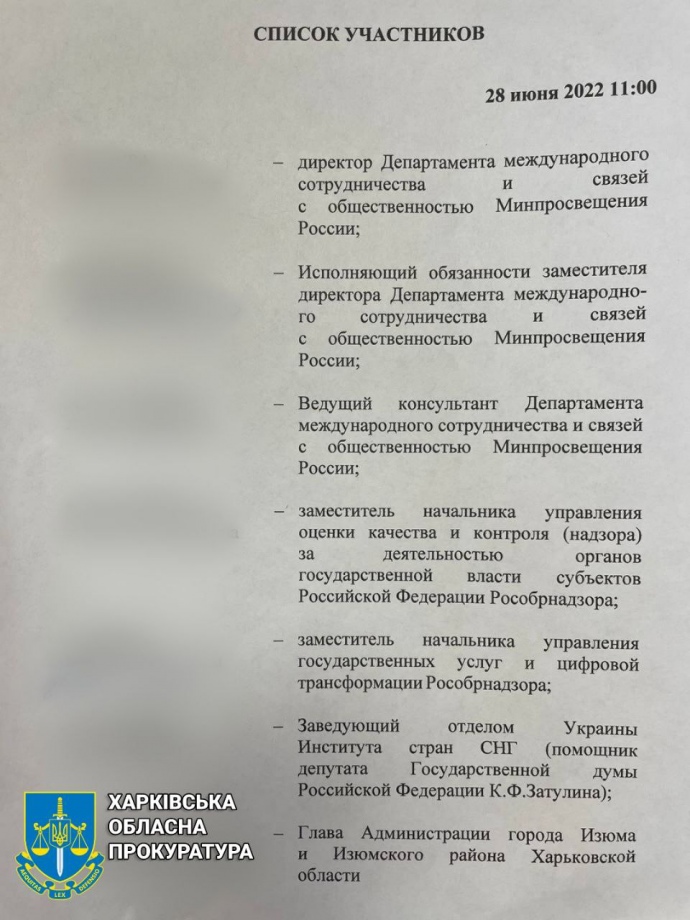 Детали: Среди документов - "материалы к совещанию по вопросам поддержки и развития систем образования Харьковской области". Одним из кураторов этого процесса было "Министерство просвещения РФ".