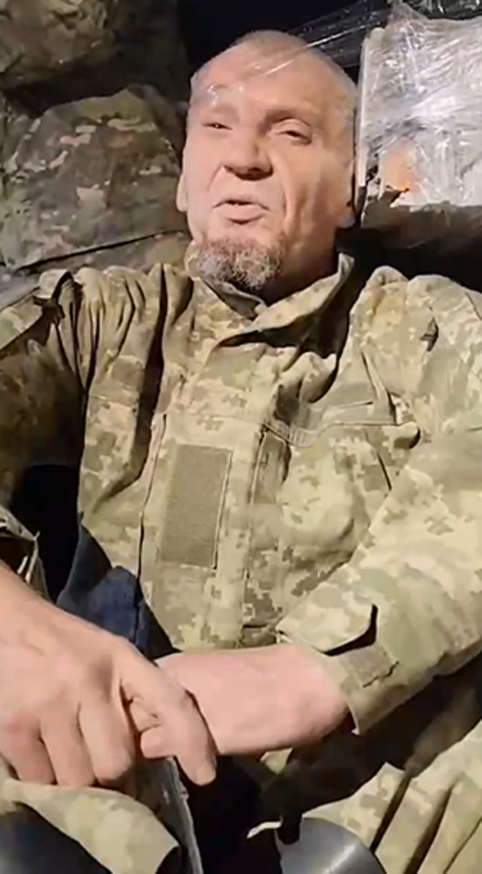 На другой части видео запечатлен мужчина в пиксельной форме – его голова скотчем примотана к импровизированной наковальне из кирпича и бетона. Он говорит, что он "Нужин Евгений, 1967 года рождения, отправился на фронт чтобы перейти на строну Украины и воевать против русских" и что "4 сентября осуществил свой план перехода на строну Украины".