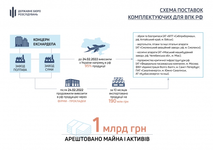 С 24 февраля 2022 года по этой схеме в РФ поставлено комплектующих минимум на 190 млн грн, отмечают в ГБР.