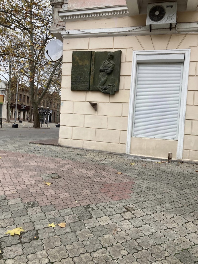 Справка: Автор мемориальной доски – николаевский скульптор Юрий Макушев. Мемориальная доска висела на доме, где по версиям некоторых историков был постоялый двор и в нем останавливался поэт.