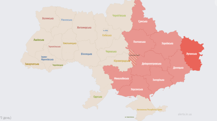 Напомним: 29 ноября днем воздушная тревога объявлялась по всей Украине, позже была еще одна - в восточных и южных регионах. Сейчас тоже в зоне риска - эта часть страны.