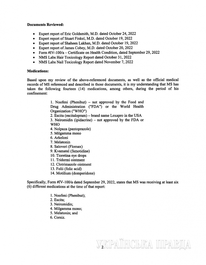 "Мое экспертное мнение заключается в том, что одновременный прием нескольких препаратов без надлежащих показаний, как это есть в материалах дела Саакашвили, несет в себе серьезный риск развития опасных побочных эффектов и зависимости.