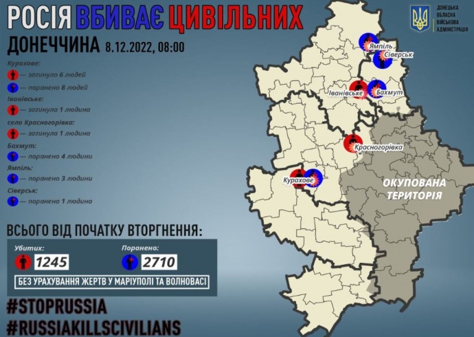 Прямая речь Кириленко: "За 7 декабря россияне убили 9 мирных жителей Донецкой области: 6 в Курахово, 1 в селе Красногоровка, 1 в Ивановке и 1 в Бахмуте".