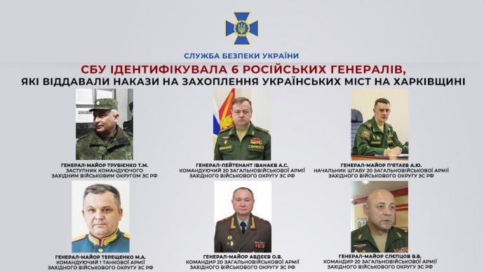 Украинские правоохранители идентифицировали шесть российских генералов, которые отдавали приказы захватывать украинские города на Харьковщине.