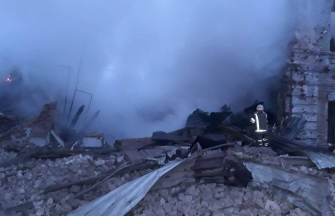 Прямая речь Синегубова: "Ночью оккупанты нанесли ракетный удар системой С-300 по городу Купянск. Ракета попала в двухэтажное админздание, в результате чего произошел пожар на площади 400 м.кв. Здание полностью разрушено. Обошлось без пострадавших".