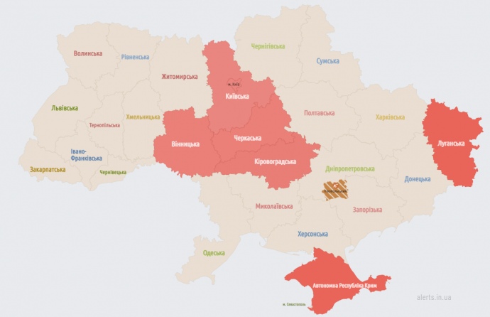 Детали: В Киевской, Винницкой, Черкасской, Кировоградской областях и в городе Киеве объявлена воздушная тревога.