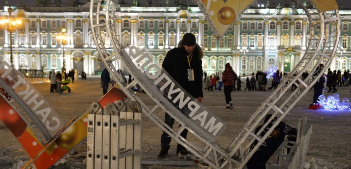 К Новому году в Петербурге установили инсталляцию в виде сердца с надписью "Петербург-Мариуполь".