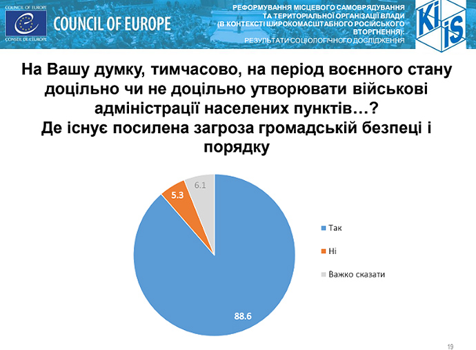 Детали: В то же время поддержку созданию на время войны военных администраций озвучили более 74% опрошенных.