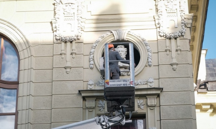 С фасада Черновицкого музыкально-драматического театра имени Ольги Кобылянской сняли бюст российского поэта Александра Пушкина, его переместили на склад, где стоит демонтированный Сталин.