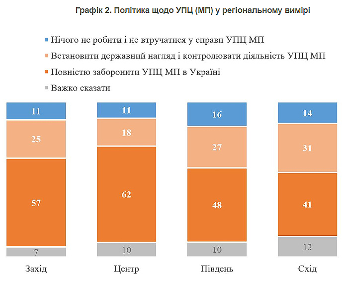Социологи отмечают, что во всех регионах Украины большинство населения выступают за вмешательство государства в вопросе деятельности УПЦ МП.