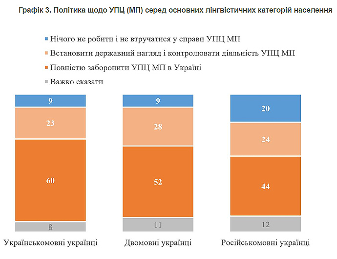 Две трети украинцев считают, что государство должно вмешаться в деятельность УПМ МП, из них 54% убеждены, что эту церковь надо полностью запретить в Украине.