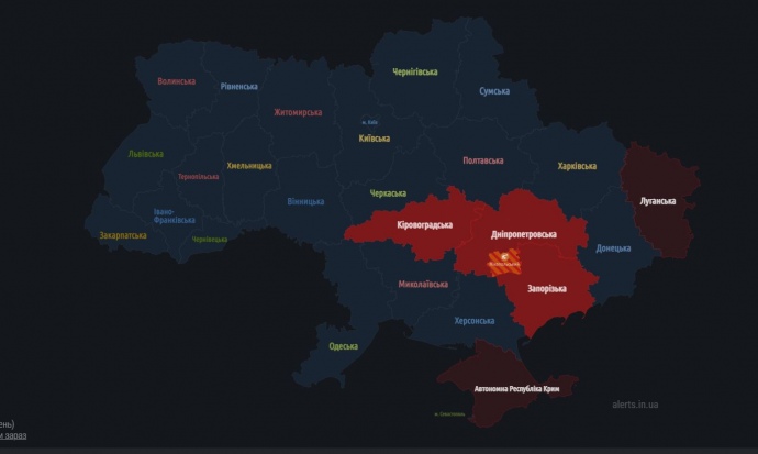 Детали: По состоянию на 23.48 воздушную тревогу объявили в Кировоградской, Днепропетровской и Запорожской областях.