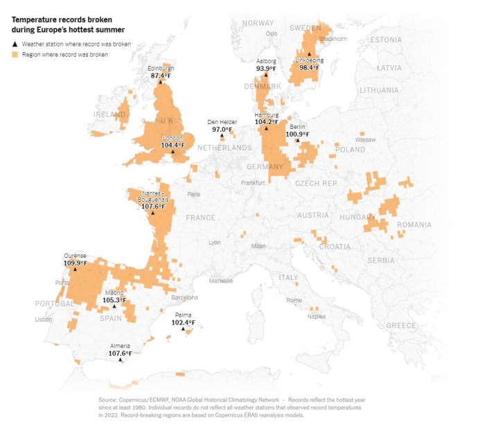Для Европы лето 2022 года было самым жарким за всю историю наблюдений, а в целом прошлый год стал вторым самым теплым годом за всю историю наблюдений для Европы.