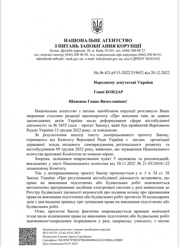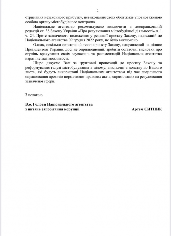 Узнать больше: НАПК считает, что реформа градостроительства имеет серьезные коррупционные риски
