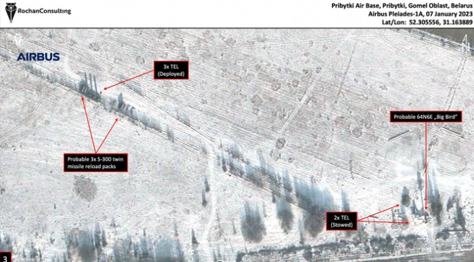 Кроме того, на фото можно увидеть грузовые машины и несколько радаров, которые Rochan Consulting определили как 76N6 и 64N6E.