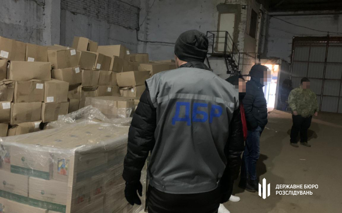 Работники ГБР совместно с Нацполицией Днепропетровщины и департаментом военной контрразведки СБУ разоблачили организованную группу, которая присваивала и перепродавала продукты питания, предназначавшиеся для Вооруженных сил Украины".