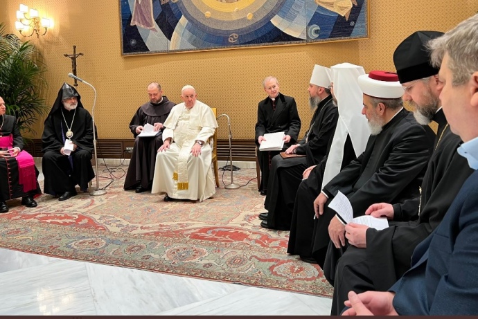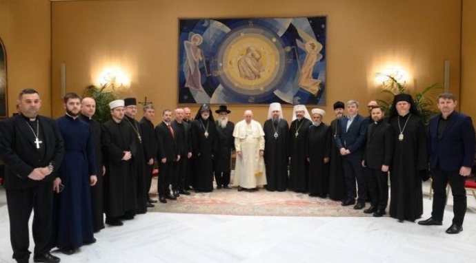 Папа Римский Франциск встретился с делегацией Всеукраинского Совета Церквей и религиозных организаций, это первый такой визит украинского межконфессионального объединения в Ватикан.