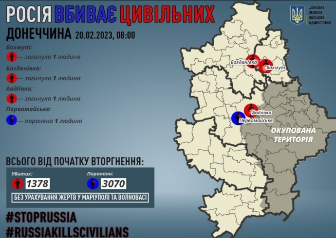 Прямая речь Кириленко: "За 19 февраля россияне убили 3 жителей Донецкой области: в Бахмуте, Богдановке и Авдеевке. Еще 1 человек в области получил ранения".