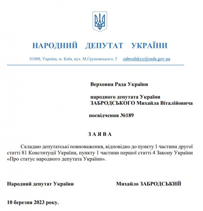 Нардеп от "Евросолидарности" Забродский слагает мандат