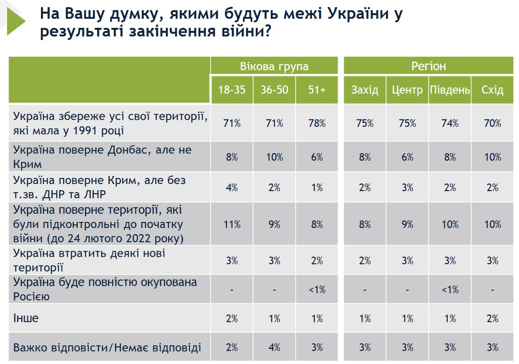 Детали: Респондентам задавали вопрос: "По вашему мнению, какими будут границы Украины в результате окончания войны?"
