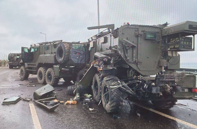 Российская колонна бронеавтомобилей, которая направлялась на Херсонщину через Керченский мост, "превысила скорость" – оккупанты потеряли п’ять авто.