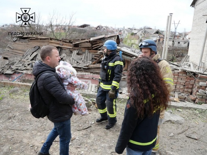 В результате российского обстрела в Запорожье в жилом доме деформировались двери и заблокировали женщину с годовалым ребенком.