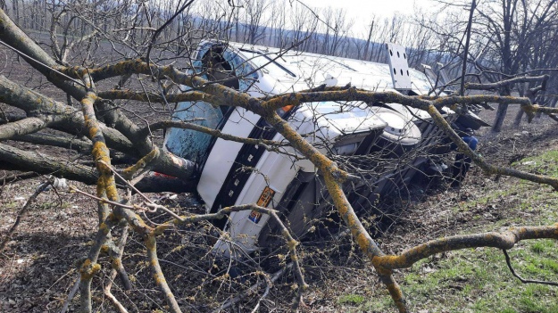 Автобус потерпел аварию около 9-40 в субботу 8 апреля на территории Дрокиевского района. Автобус врезался в дерево, после того съехал в кювет и завалился на правый бок.