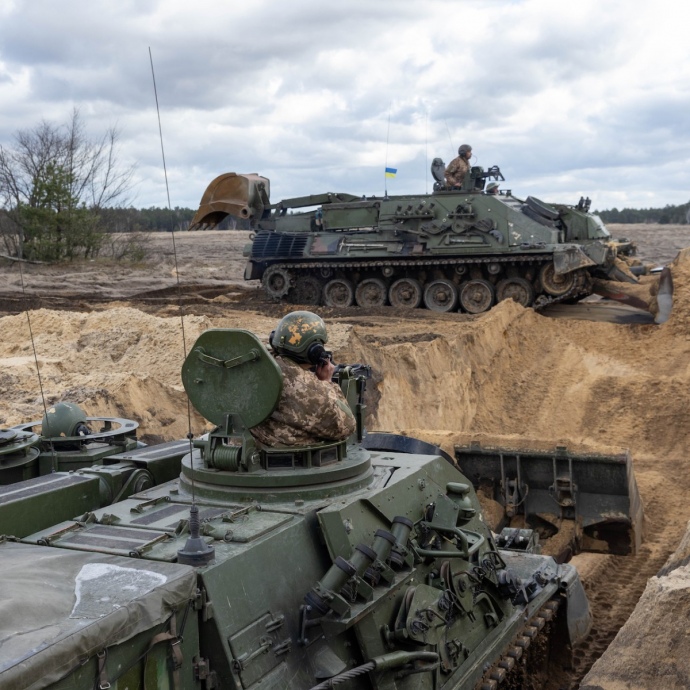 Дословно: "Сводная группа инструкторов из Вооруженных Сил Королевства Норвегии Forsvaret в составе норвежской миссии по обучению украинских военных в Республике Польша обучают военнослужащих Вооруженных Сил Украины управлять танками Leopard 2, строить танковые препятствия и как их прорывать".