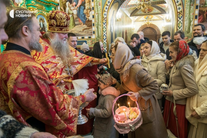 Впервые пасхальная служба в этом храме проходила на украинском языке и с новым наместником - архимандритом Авраамием. Утром на службу пришли несколько десятков верующих, постепенно их количество увеличивалось.
