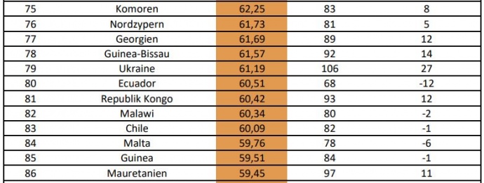 Украину в рейтинге опережают десятки африканских стран и Грузия (77 место).