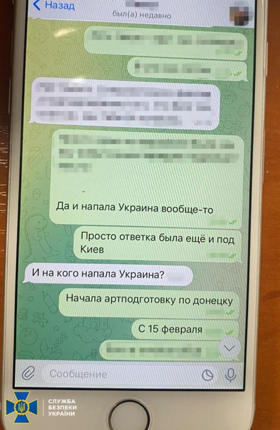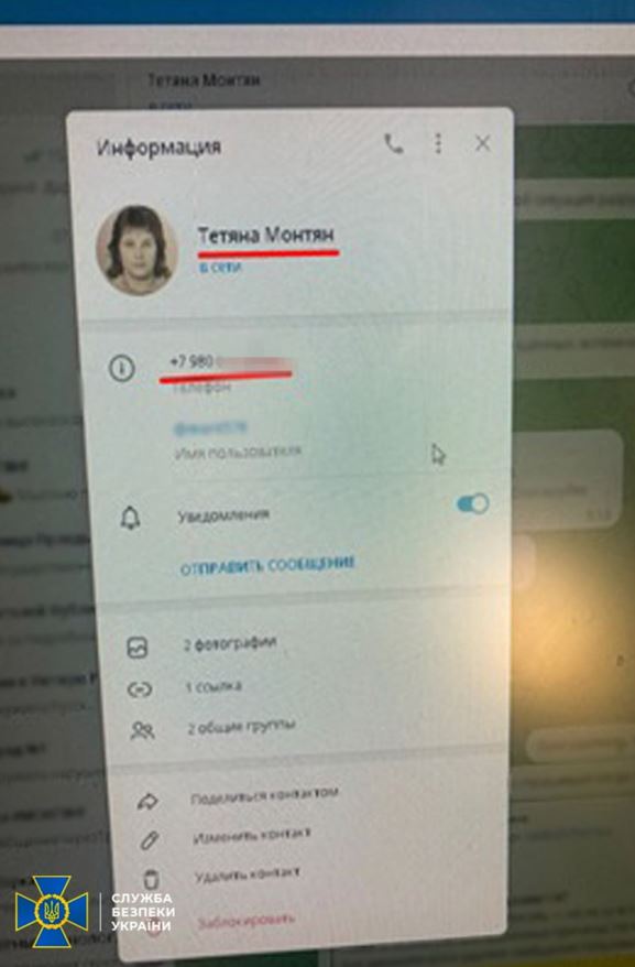 Дословно: "В результате комплексных мероприятий в Киеве разоблачен администратор прокремлевского Телеграмм-канала вражеской пропагандистки Татьяны Монтян, которая публично оправдывает вооруженную агрессию РФ.