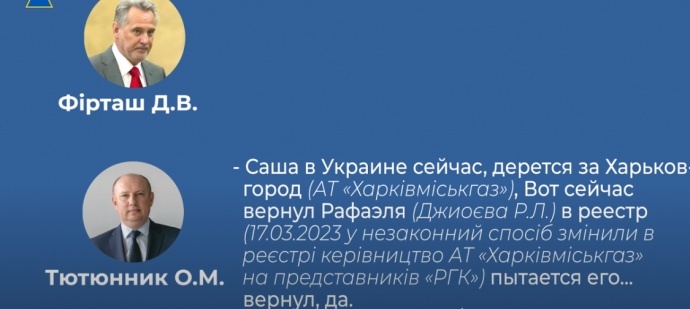 Бизнесмен также хвалит своих подопечных за "расторопность", а именно, что юрист компании незаконно изменил в реестре руководство АО "Харьковгоргаз" на представителей РГК.