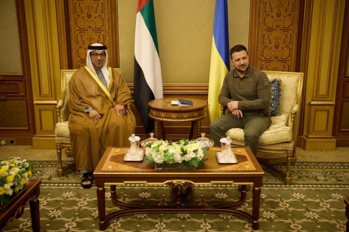 Президент Украины Владимир Зеленский в Королевстве Саудовская Аравия, куда он прибыл для участия в саммите Лиги арабских государств, провел встречи с главами делегаций Объединенных Арабских Эмиратов, Султаната Оман и Государства Кувейт.