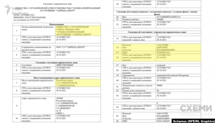 Детали: Как сообщают "Схемы", по данным реестра юридических лиц РФ, с октября 2021 года Дмитрий Табачник владеет долей в 50% компании ООО "Специализированный застройщик "Таврида-Центр". Место регистрации - Крым, город Симферополь. Основным направлением работы указана "деятельность заказчика-застройщика, генерального подрядчика".