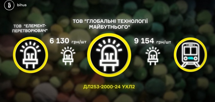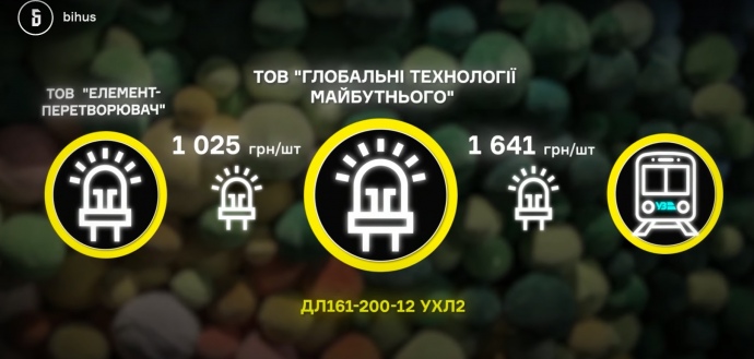 Расследователи выяснили, что в 2022 году компания жены и. о. главы БЭБ поставляла заводам "УЗ" диоды вида ДЛ253-2000-24 УХЛ2 по цене 6 973 грн за штуку, тогда как покупала за 4 970 грн/шт (цены здесь и ниже указаны без НДС).