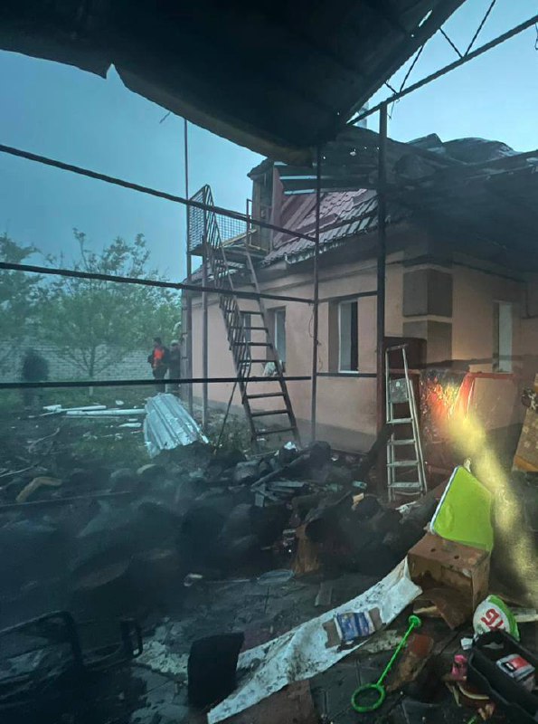 Досталось Днепру. В частном домовладении возник пожар, который уже потушили. Повреждены 2 дома и авто.