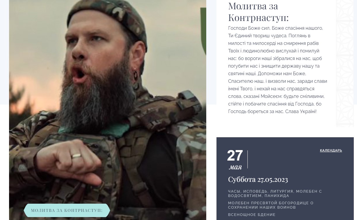 Там же размещен текст молитвы за украинское контрнаступление на украинском языке: "Господи Боже сил, Боже спасіння нашого, Ти Єдиний твориш чудеса. Поглянь в милості та милосерді на смирення рабів Твоїх і людинолюбно вислухай і помилуй нас: бо вороги наші зібралися на нас, щоб погубити нас і знищити державу нашу та святині наші. Допоможи нам Боже, Спасителю наш, і визволи нас, заради слави імені Твого, і нехай на нас справдяться слова, сказані Мойсеєм: будьте сміливими, стійте і побачите спасіння від Господа, бо Господь бореться за нас. Слава Україні!".