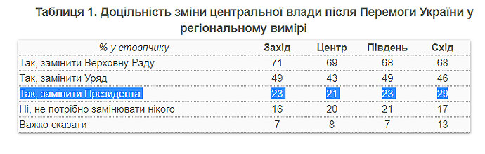 Дословно социологи: "Подавляющее большинство украинцев (73%) поддерживают обновление центральной власти на том или ином уровне. Меньше всего респондентов − 23% − хотели бы сменить после победы президента".