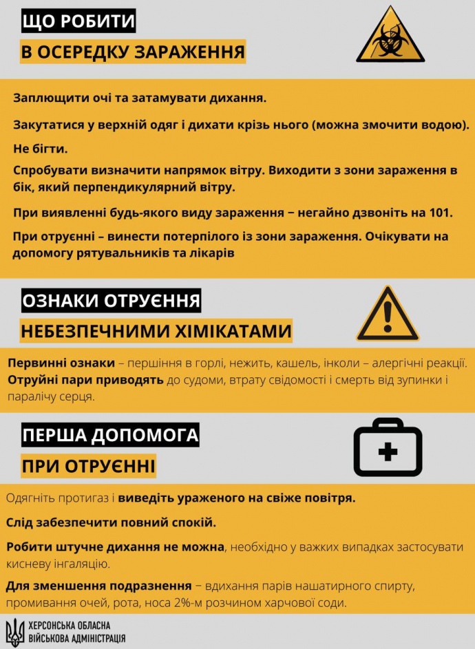 Он опубликовал памятку для населения с алгоритмом действий на случай химической опасности и добавил, что власть постоянно следит за этой ситуацией и готова оперативно реагировать на все угрозы, которые могут возникнуть.