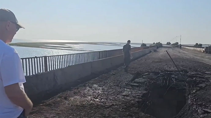 Оккупанты заявляют об обстреле моста на административной границе между Херсонской областью и Крымом вблизи Чонгара.