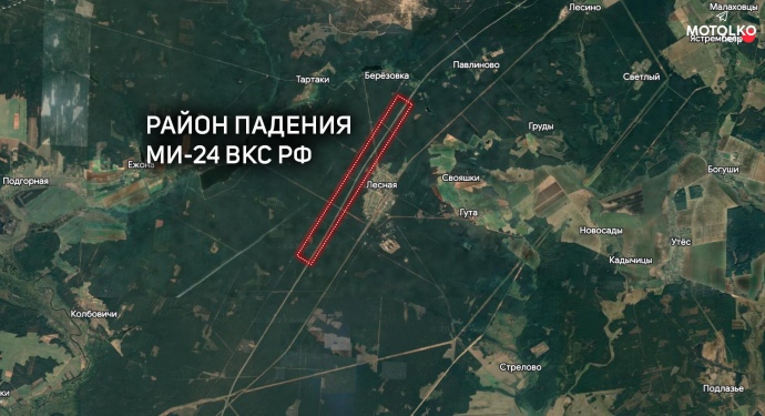 Вертолет ВКС РФ Ми-24 в Беларуси упал возле агрогородка Лесная между Ивацевичами и Барановичами.